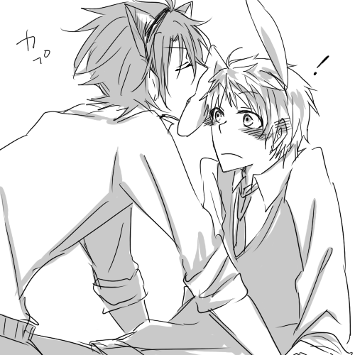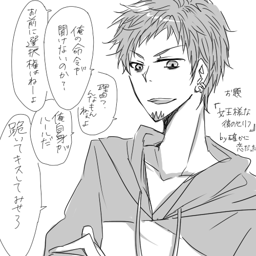 2012.04.22 Sun 19:56:57 イルカ君他サイト(主に携帯サイト)で多かったバンダナ君の設定↑ まさにバンの容姿にフェイの性格入れたような人物像で、ナンパ成功率120%くらいの女ったらし。 何ていうか、格好良すぎて嫌だ← 自信満々なその鼻へし折りたくなります← と言う訳で当サイトではピュアっピュアなバンと弄られ役のフェイとを分割して押していきたいと思う管理人です。