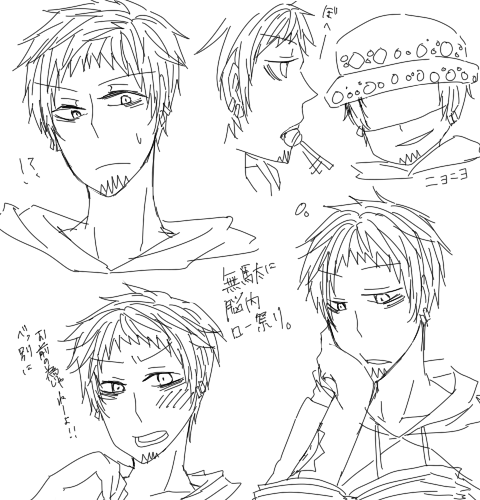 LastSleepハートの海賊団愛してるー!PAGE | 7 8 9 10 11 12 13 14 15 16 17 | ADMIN | WRITE 2010.03.05 Fri 14:55:32 カスケット(誤字じゃないよテストが終わる水曜までの辛抱だと更新は控えようと思いつつ、結局落書きしまくってるミズシロです。 溢れんばかりの愛が抑えきれないんだ・・・! まぁそんなわけで今回の妄想の被害者はキャスケット^^^ 攻め顔が多いのはきっと気のせいじゃないです。年下&敬語攻め萌え。 そういえば、キャスケットの武器は基本ナイフってイメージなんですけど、 返り血を浴びるのが嫌だから、とかいう理由で銃でも良いなーと。 寧ろ銃使うペンギンに憧れて、銃に興味を持ち始める、とかも良いかもしれない。 結局扱いが上手くないからペンギンにナイフを進められるとかも良いな! ・・・でも何よりも、きゃすにゃんに一番癒されてるのは何故だろう・・・! そろそろ本気で精神科に行った方がいいのかもしれない。 PR 2010.02.28 Sun 10:22:53 テスト期間にも関わらず勉強が果てしなく大変なことになってます^^^^^ そんなことを言いながらも漫画アップしましたー!しかも初のキドロ!!ずっと描きたかったやつですww でも甘い雰囲気は無理でした。自分が変態なローと男らしいキッドが好きなので^^^ 愛はあります。ローの愛が大きすぎて(歪み過ぎてて)「→←←←」な状況になってるだけで。 っていうか、そんなローの愛を面倒臭がりながら受け止めてるキッドって格好良くないですか。 それで、過度なスキンシップにいい加減キッドが切れて、いい加減にしねぇと襲うぞって押し倒しながら言ってると良い← あ、でもスキンシップのしすぎで怒られて落ち込んでるローとかも可愛いとおm(自重 ・・・・どうして自分は毎回キャラを崩壊させたがるんだろう。 2010.02.24 Wed 20:51:32 失恋系の曲にキュンとしませんか最近夢ばっか更新ってどういうことだ・・・! 2010.02.23 Tue 20:28:27 ぺんぺんお次はペンペンー 自分がペンギンに何を求めてるのか良くわかりますね。 キャラ崩壊でも良いじゃない。マイナーそれが自分にとっては王道(((( ちなみに大好きだ、のイントネーションは某アリスパロの乙女ゲームの兎で。 ・・・分かる人はそういないだろうなと思いつつ。 ペンギンが花飛ばしながら笑ってたらある意味恐怖、ある意味破壊的な萌えだと思うのです。 でもきっと、どちらにせよ原因は船長によって作られた怪しげな薬でs(ry 以下、ペンにゃんにキュンときて一発描きしたもの。 スイマーに襲われながら、意識飛ばしながら描いたものですので笑って許して下さい^^^ キ ャ ラ 崩 壊 な ん て 日 常 茶 飯 事 さ ! 2010.02.22 Mon 18:11:10 現在の脳内はこんな感じまさに自分だけが楽しい状況^^^^^ ネットサーフィンしてたらイベント行けなかった悔しさも忘れてニヨニヨ∞してますw あーもう船長大好きなんですけどぉおおおお!!(落ち着け 原作がカッコよすぎて、自分の絵が俺絵になるのはもう諦めました。 アンケでも船長一位だし問題ないよね!っていうか本当に投票ありがとうございます!! そのおかげか日に日にハートラブが高まっていく一方で、なにしてても脳内ハートだらけ^^^ 一日中パソコンに向かってて良いならご飯も忘れてハートをガリガリ描ける勢いです。 一週間後に迫ったテストなんて目じゃないほどに。 ・・・・いやでも実情、かなり大変な状況なんですよね・・・ 学年最後のテストということもあって気合入れてやらなきゃいけないのに、全く勉強が手に付かない。 勉強しててもハートばっか考えてるせいなんですよね。畜生、大好きだ・・・!!(((( ローとかペンギンとかに勉強教えてほしいです。キャスケットだと共倒れしそうなので。 ・・・・・。 現実に戻るべきですか、そうですか。 |