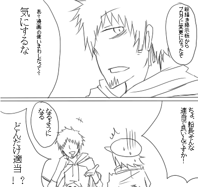 LastSleepハートの海賊団愛してるー!PAGE | 14 15 16 17 18 19 | ADMIN | WRITE 2009.08.08 Sat 21:33:58 北海道から帰還しました3泊4日の北海道ツアーから帰還しましたー・・・とにかく疲れたorz 本当は旅行に行く前にナルトの映画の感想とか北海道行きますーみたいな記事載せるつもりだったんですが 映画から帰ってからは疲れて寝てしまって、次の日早朝に出発だったので… 決して更新だらけてたわけじゃないですよ? 寧ろ旅行から帰ってすぐに北海道でネタ集めてきたのでそれをパソコンでまとめてました。 ・・・でもその最中に、勝手に落ちて勝手に再起動し始めたんですよ。 おまけに保存は全くしてなくて、すべて 一 瞬 で 消 え 去 り ま し た 。 特に絵描いてたのでショックが大きすぎて、しばらく高笑いしてましたよ← それだけじゃなくて、サイト巡りして気晴らしでもしようとインターネット開くとエラーが出て使えない始末。 心が挫けました。強化ガラスで出来たハートも粉々です。もうなんか逆に笑うしかない状態^^^^^^ しかも北海道に4日もいたせいか帰ったらとにかく暑いんですよね。あっちが26、7℃くらいでこっちは33℃ だから昼間からエアコンつけてました… まぁパソコンがある部屋はエアコン無いからあまり意味無いんですけど!(号泣 ・・・とりあえず旅行でのネタはいつか改めて描きたいなーとか思ってます あ、あとナルトの映画は楽しかったですよ!今回は木の葉の皆が活躍してて格好良かったww ”此処は俺に任せてお前は先に行け!”みたいなシーンはベタでも大好きですv ナルト映画のCM見るたびに、あ、このシーンあったなぁ・・・とか思いつつニヤけてます。 まだ見てない方は是非お勧めですよ! PR 2009.08.03 Mon 08:54:21 お祭り良いですよねー「お、それうまそうだなペンギン。俺にもくれよ」 「自分で買え」 「俺金ねぇーし」 「って、おい勝手に・・・・;」 「あ、船長良いなー!ペンギンあとで俺にも頂戴!」 「おまえらな・・・」 先日地元でお祭りがありましたー良いですよねお祭りー 久々に会った友達と元気?なんてワイワイガヤガヤ・・・ ・・・とか言いつつ自分行ってないですけど。誘われたけど断ったけど・・・! でもお祭りは好きですよーただ占いで、 ”大きな壁を乗り越えるには強い意志を持つか、・・・安静にしているか” 見たいなこと言われてたからだったら安静にしとこうかな、なんて(殴 すみません、冗談です。(占いは本当ですが。 ただ花火とか瞬間的に大きな音がするものが苦手で; 地元のだから花火も近くで打ち上げられるのでどうしようかと迷った挙句、です。 ・・・まぁそんなことは置いといて代わりに映画館行ってきまーす! 映画館とか久々すぎて楽しみですw本当に何年ぶりくらいだろう・・・ そもそもそんなに行ったことないので・・・大音量&大画面が楽しみww だから観るものがナルトでも楽しんできますよ。 いや、自分はナルト好きなんですけど、それ言ったら親に微妙な顔されましたorz っていうか寧ろハートの海賊団が主の映画作ってくれたら絶対行くのにな^^^^ それじゃ楽しんできまーす! 2009.07.31 Fri 15:31:37 漫画「Children」完結!なんとか7月中には終わらせたくて夜なべして頑張りましたよ・・・! まぁとりあえず完結!! 蛇足。 2009.07.31 Fri 15:25:57 掲示板から変更しました! |